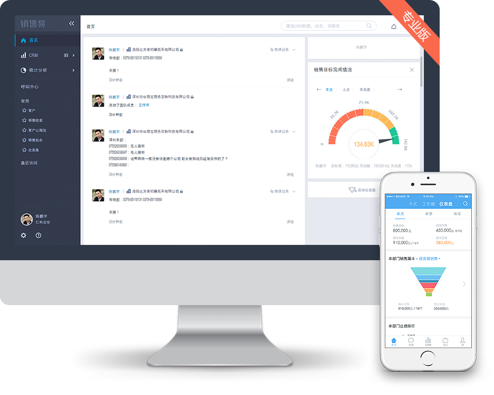 摆脱用户限制,追踪您的销售线索,销售机会,沉淀客户信息,同时管理市场活动,合同回款,通过销售漏斗分析,精准销售预测和自定义仪表盘深度管理您的整个销售周期