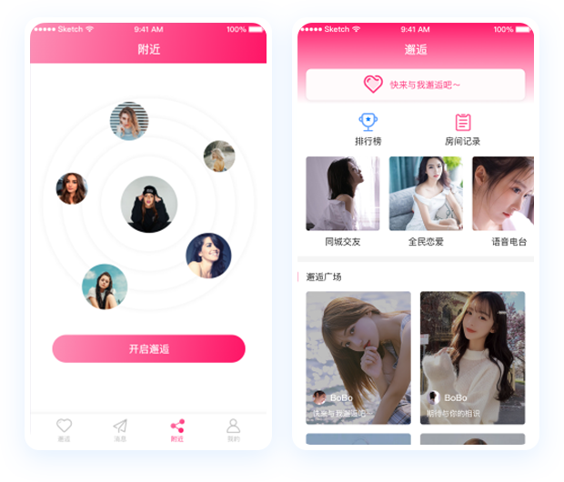 利用音视频即时通讯、实现同城,交友全民恋爱功能,使用户更深层次进行互动