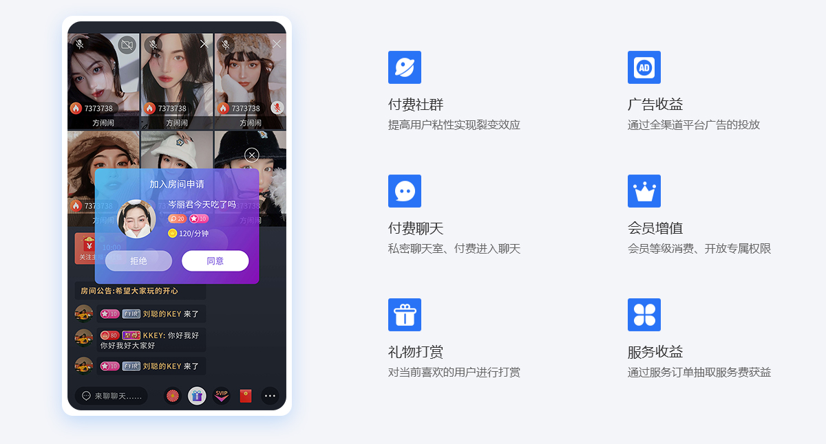 小姐姐小哥哥语音连麦陪你嗨聊,多种聊天场景,打造社交生态 提高用户粘性