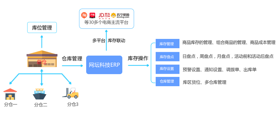 高效的分配仓库和多仓的供应链管理,大大的减少了损耗的成本。快速的匹配快递模块,提高了商品的发货速度,节约物流成本。