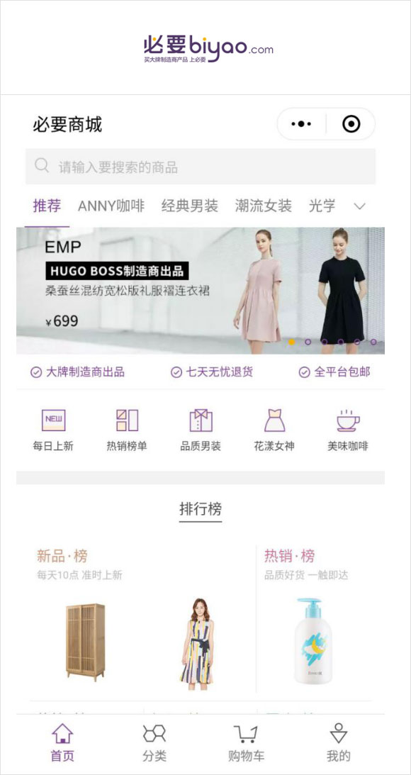 系统处理小程序商城、资讯、营销、购物、订单、账单、统计、支付、会员、积分、收藏、分销等整个环节,实现品牌电商营销的轻便环境。
