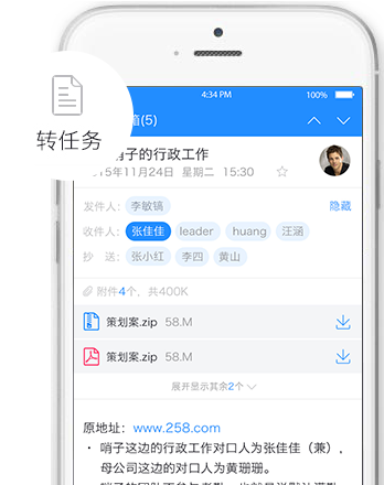 邮件里经常会收到工作指派,一键快速的转为工作任务,方便统一管理自己的工作任务