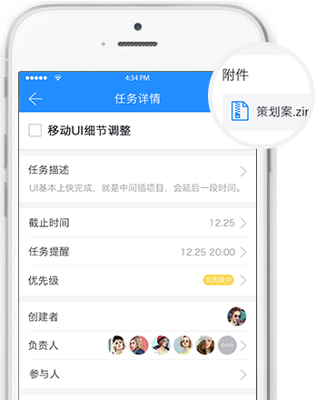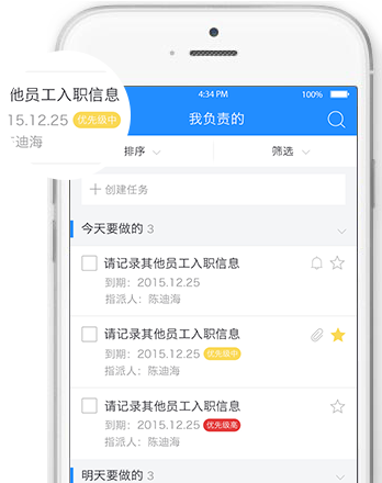 所有任务参与人共享信息 实时进行任务讨论 相关文件共享 优先级标签,大家做的有的放矢